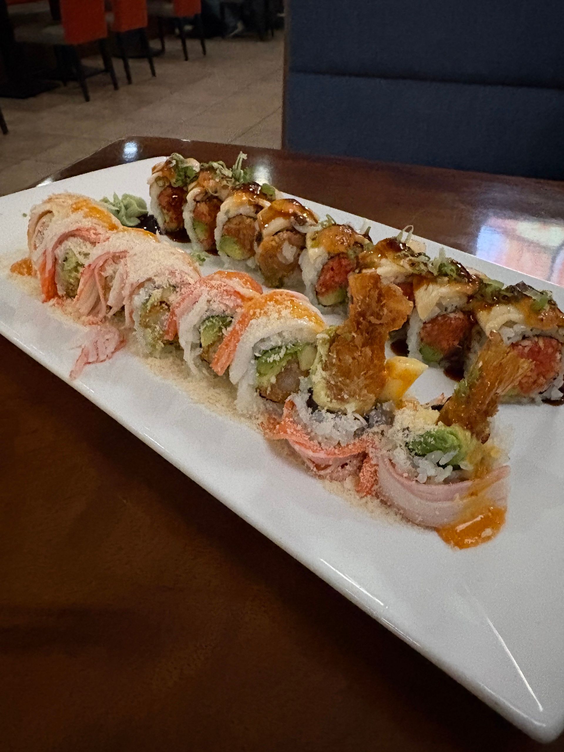 What We Tried & Recommend – Start with the Spicy (Garlic) Edamame, then go straight for the rolls. The Crunchy Crab Roll disappeared fast, but the real standout for me was the Marilyn Monroll. It was so good that I’ve already decided it’s a permanent order going forward. If you’re the kind of person who likes to try something new every time, you’ll have plenty of options. Beyond sushi, the menu is deep: soups, ramen, noodle and rice dishes like pad thai and kimchi fried rice, so even non-sushi folks will be happy.