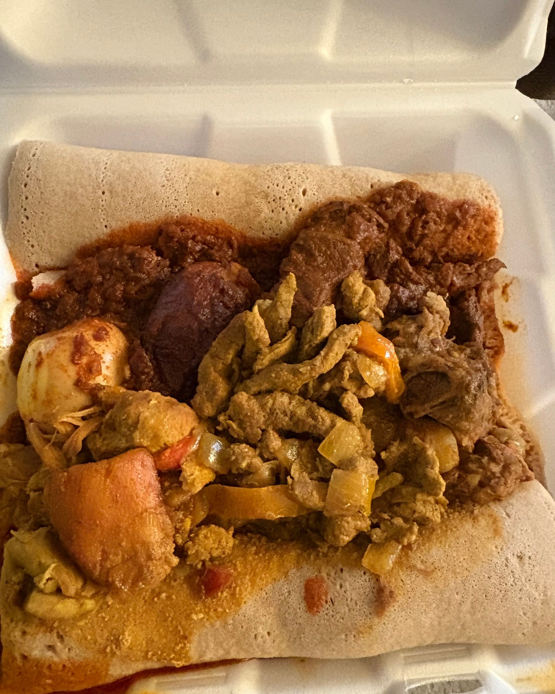 Try It All (You’ll Want To) – I ordered both the Meat Combo and the Veggie Combo through the Eatfuti app because I couldn’t decide — and honestly, that’s the move I recommend. It’s the perfect way to sample a little of everything, from tender stewed meats to flavorful lentils, greens, and spiced vegetables. If you’re new to Ethiopian cuisine, don’t be shy about asking for recommendations (or letting them choose for you when you go in person). And a tip — if you prefer mild heat, mention it when you order as some dishes bring a spicy kick.