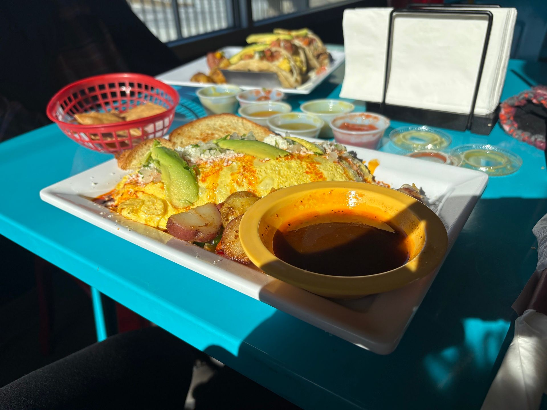 🌮 Breakfast for lunch, a salsa bar that’s basically choose-your-own adventure, and a birria omelet I’m still thinking about.